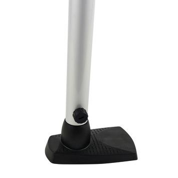 Pompe à vélo Dresco compacte et robuste avec une longueur de tuyau de 35 cm. Le tuyau de pompe a une double tête de pompe qui peut être utilisée pour gonfler les valves Dunlop, Presta et Schrader. La pompe à pied peut pomper jusqu'à une pression de 10 Bar ou 145 PSI.