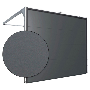 La porte de garage sectionnelle Optimal L40 est composée de 4 panneaux (acier intérieur/acier extérieur) de 40 mm d'épaisseur isolés à la mousse PUR (U = 1,3 W/m²K). La couleur extérieure de l'écran plat est le gris anthracite RAL 7016 et la structure de surface est lisse. Le joint d'arrêt en caoutchouc gauche/droite/supérieur est de couleur noire. Cette porte de garage possède toutes les caractéristiques que l'on attend d'une porte moderne d'aujourd'hui : Système de protection des doigts, étanchéité entre les panneaux, caoutchouc d'étanchéité au bas, ressorts galvanisés et protection contre le bris de ressort. La butée minimale à gauche et à droite est de 100 mm et en haut de 180 mm. Cette porte est conforme CE.
