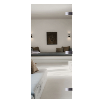 Dans l’assortiment Vetro vous retrouvez des portes en verre à différents motifs. Les portes créent plus de luminosité. Grâce à cet atout, les portes s’adaptent à chaque intérieur. Disponible en verre transparent ou mat (dépoli), comme porte battante, pivotante ou coulissante. Cette porte en verre translucide Vetro C000 apporte un maximum de lumière dans votre intérieur et vous permet ainsi de créer un sentiment d’espace. Un véritable accroche-regard dans votre salon. En complétant votre porte en verre d'un tirant et de charnières appropriés, vous obtenez le résultat parfait qui impressionnera vos invités. Charnières (art. 121644) et jeu de poignées (art. 121641) à commander séparément. En option : ébrasement (art. 611213).