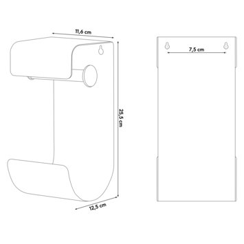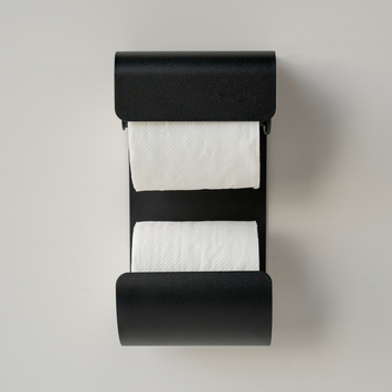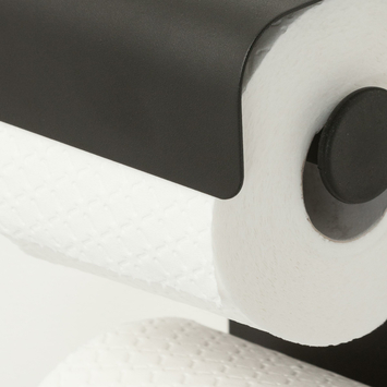 Le porte-papier de 25,5x11,6x12,5 cm se visse au mur au moyen des vis fournies. D'un dessin surprenant, il offre place sur le dérouleur au rouleau entamé tout en gardant un rouleau de réserve à proximité.