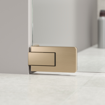 La finition or brossé des charnières et de la poignée donne un look moderne et élégant à toute salle de bain minimaliste.