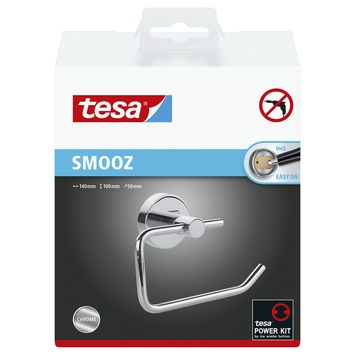 Le porte-rouleau tesa® Smooz sans couvercle peut-être fixé sans perçage grâce à la technologie unique tesa® Power.Kit. Le montage est très simple : 1) Collez l'adaptateur sur le mur et remplissez-le avec l'adhésif tesa® Power.Kit 2) Laissez ensuite l'adhésif durcir pendant 12 heures 3) Vissez le porte-rouleau de papier toilette sur l'adaptateur. Tous les matériaux nécessaires sont inclus dans l'emballage : un porte-rouleau de papier toilette et un kit de montage. Le porte-rouleau de papier toilette a un design élégant et tendance. Le support peut-être retiré sans résidus de colle ni dommages. Si vous souhaitez le réutiliser par la suite, vous pouvez le faire avec le kit d'adaptateurs BK20, qui peut également être acheté séparément. Convient pour les carreaux, le métal, la pierre naturelle, le marbre, le béton, le bois, le verre et de nombreux types de plastique. Ne convient pas aux papiers peints, stucs et autres surfaces avec un revêtement antiadhésif. La série Smooz se compose de divers accessoires pour un look complet, voir également le reste de la gamme.