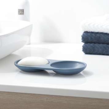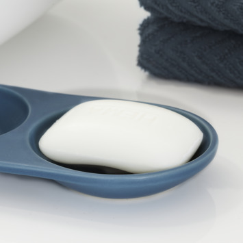 La brique de savon mise bien en vue dans le porte-savon Conical bleu ne tachera plus la tablette. Et il suffit d'un coup de serviette humide pour le nettoyer. Pas adepte d'un morceau de savon ? Le porte-savon devient soucoupe et forme un ensemble splendide avec le distributeur de savon et gobelet de la même série. Également disponible en vert mat.