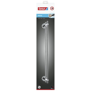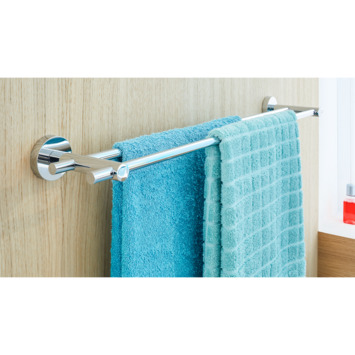 Le porte-serviettes double tesa® Smooz en chrome brillant est inoxydable et a un design chic et intemporel. Ce porte-serviettes est adapté pour suspendre 2 serviettes. Il peut être monté sans perçage grâce à la technologie unique tesa® Power.Kit. Le montage est très simple : 1) Collez les adaptateurs sur le mur et remplissez-les avec l'adhésif tesa® Power.Kit 2) Laissez l'adhésif durcir pendant 12 heures 3) Vissez le porte-serviettes sur les deux adaptateurs. Tous les matériaux nécessaires sont inclus dans l'emballage : porte-serviettes et adaptateur. Le support peut être retiré sans résidus de colle ni dommages. La réutilisation est possible avec le jeu d'adaptateurs BK20-2, qui peut également être acheté séparément. Convient pour les carreaux, le métal, la pierre naturelle, le marbre, le béton, le bois, le verre et de nombreux types de plastique. Ne convient pas aux papiers peints, stucs et autres surfaces avec un revêtement antiadhésif. La série Smooz se compose de divers accessoires pour un look complet, voir également le reste de la gamme.