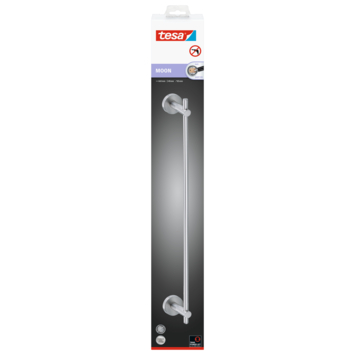 Le porte-serviettes tesa® Moon avec finition en acier inoxydable et traitement anti-empreintes digitales a un look tendance. Il peut-être monté sans perçage grâce à la technologie unique tesa® Power.Kit. Le montage est très simple : 1) Collez les adaptateurs sur le mur et remplissez-les avec l'adhésif tesa® Power.Kit 2) Laissez l'adhésif durcir pendant 12 heures 3) Vissez le porte-serviettes sur les deux adaptateurs. Tous les matériaux nécessaires sont inclus dans l'emballage : porte-serviettes et kit de montage. Le support peut-être facilement retiré sans résidus de colle ni dommages. La réinstallation est possible avec le jeu d'adaptateurs BK20-2, qui peut également être acheté séparément. Convient pour les carreaux, le métal, la pierre naturelle, le marbre, le béton, le bois, le verre et de nombreux types de plastique. Ne convient pas aux papiers peints, stucs et autres surfaces avec un revêtement antiadhésif. La série Moon se compose de divers accessoires pour un look complet, voir également le reste de la gamme.