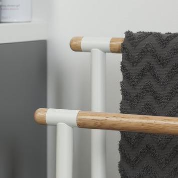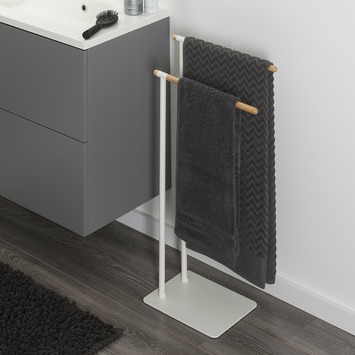Le porte-serviettes Sealskin Brix Metal White est un porte-serviettes double pratique pour votre salle de bain. Vous pouvez facilement accrocher 2 serviettes sur les 2 montants. Mesurant 79,5 cm de haut, 43 cm de large et 24 cm de profondeur, ce porte-serviettes autoportant s'intègre dans presque toutes les salles de bain et vous n'avez pas besoin de percer de trous pour l'installer. De plus, vous pouvez toujours le placer où vous le souhaitez. Cela vous offre une grande flexibilité. Les beaux accents en bois en combinaison avec la base en métal blanc donnent un look élégant et s'intègrent dans n'importe quel intérieur. Vous bénéficiez d'une garantie d'un an sur le rack. Il est important que vous nettoyiez régulièrement l'ensemble avec un chiffon humide, afin que vous puissiez profiter longtemps de votre porte-serviettes. Dans la série Brix, vous pouvez également acheter d'autres produits assortis de Gamma.