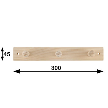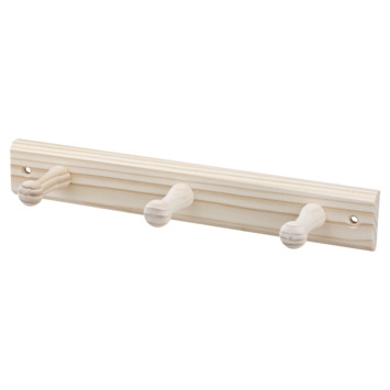Le portemanteau en bois Mirna mesure 300 mm et possède 3 crochets. Il peut être peint ou vernis dans la couleur souhaitée.