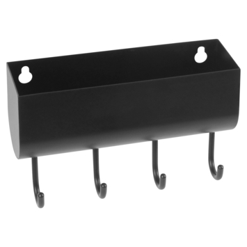 Ce portemanteau compact est doté d'un plateau pratique pour ranger divers petits objets, y compris les clés. Le portemanteau est de couleur noire et dispose de 4 crochets.