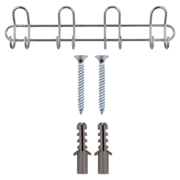 Ce robuste portemanteau est en acier et possède 8 crochets. Sa finition est chromée.