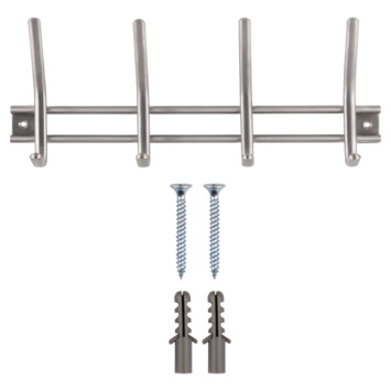 Ce portemanteau moderne est en acier inoxydable et possède 4 crochets.