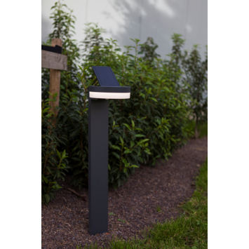 Le capteur de mouvement intégré allume automatiquement la lampe lorsqu'un mouvement est détecté. Pendant la journée, la batterie se charge via le panneau solaire placé sur le dessus, permettant à la lampe de fonctionner de manière autonome le soir. Le luminaire est fabriqué en aluminium robuste et présente un design fermé avec une fenêtre en plastique pour une large diffusion de la lumière. Grâce à sa classification IP54, la borne résiste à la pluie, à la poussière et à d'autres influences extérieures. La lampe à socle Runda est une solution idéale pour ceux qui recherchent un éclairage extérieur puissant et sans fil avec un look moderne.