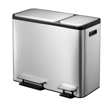 La poubelle à pédale Eko EcoCasa 15+15+15L est une poubelle à pédale rectangulaire en acier inoxydable brossé avec un revêtement anti-empreintes digitales et des poignées en plastique pratiques. Elle est équipée de deux couvercles à fermeture amortie. Les deux pédales donnent un accès séparé aux seaux intérieurs en plastique (2x 15 + 1x 15 litres) pour le tri des déchets. La fonction de maintien en position ouverte verrouille le couvercle pour faciliter le nettoyage de la poubelle ou le changement du sac poubelle.