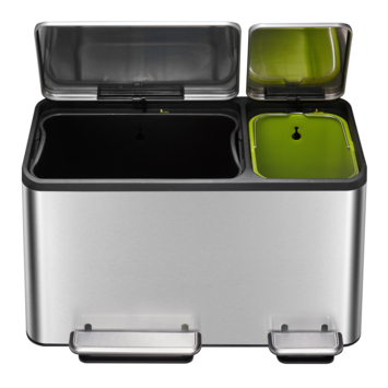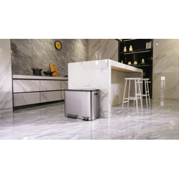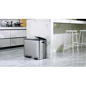 La poubelle à pédale Eko EcoCasa 30+15L est une poubelle à pédale rectangulaire en acier inoxydable brossé avec un revêtement anti-empreintes digitales et des poignées en plastique pratiques. Equipé de deux couvercles à fermeture amortie. Les deux pédales donnent un accès séparé aux seaux intérieurs en plastique (30 + 15 litres) pour la séparation des déchets. La fonction de maintien en position ouverte verrouille le couvercle pour faciliter le changement du sac poubelle et le nettoyage de la poubelle.