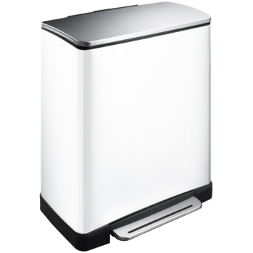 La poubelle à pédale Eko Recycle E-Cube 28+18L blanche est une poubelle à pédale rectangulaire élégante avec une pédale extra large et 2 bacs intérieurs en plastique (18 et 28 litres). Équipé d'un couvercle amorti et d'une fonction de maintien en position ouverte. Il y a de la place pour un filtre à charbon à l'intérieur du couvercle pour éviter les odeurs.
