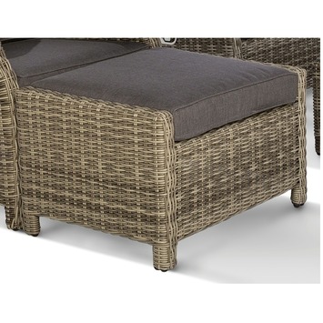 Le pouf Granada a un look & feel authentique grâce à l'utilisation d'osier synthétique de couleur brune et d'un coussin de couleur anthracite. Le pouf parachève à la perfection l'ensemble lounge Granada !