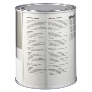 L'apprêt GAMMA 750 ml BLANC est une excellente base pour une bonne peinture intérieure. Vous protégez de manière optimale les boiseries, les tôles, les peintures existantes et le métal prétraité à l'intérieur en prétraitant la surface avec cet apprêt extra opaque. En utilisant l'apprêt à base d'eau GAMMA, la couche de finition adhère mieux et vous obtenez un meilleur résultat final avec une couverture bonne et uniforme. C'est une peinture à l'eau, facile à poncer et peu odorante et donc le primaire idéal pour toutes les menuiseries d'intérieur.Le bidon a une contenance de 750 millilitres, ce qui est suffisant pour une surface d'environ 9 m². L'apprêt est sec après 1 heure et peut être peint après 6 heures. Il est préférable de traiter la peinture à une température comprise entre 8 et 25 ° C. Travaillez de préférence à la lumière du jour afin de ne manquer aucun morceau de la surface. Peignez toujours le bois dans le sens du grain du bois. L'apprêt est facile à appliquer avec un pinceau ou un rouleau pour peinture à base d'eau. Vous pouvez les acheter au GAMMA le plus proche ou via la boutique en ligne.