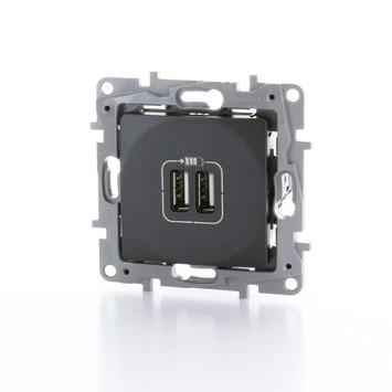 La double prise USB Niloé de Legrand est fabriquée en plastique de couleur anthracite et a un look moderne avec des angles arrondis. Idéale par exemple pour recharger votre smartphone. Bon à savoir : le matériau innovant utilisé tient compte de l’impact environnemental lors de chaque étape du cycle de vie du produit.