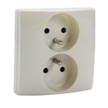 Dit stopcontact is zo handig en zo doordacht ! Geen inbouwdoos nodig ! Met een klokzaag één gat in de (houten) wand. De 3 kabels in de voorziene gaatjes duwen ! Niks te vijzen, ze zitten vanzelf rotsvast ! Dan stopcontact in de opening duwen en met 4 vijzen in de wand vijzen ! Sierdekseltje er op en ... klaar ! Mooi, en ineens twee (2) stopcontacten !