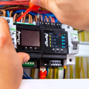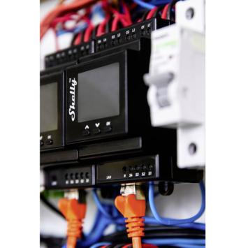 L'interrupteur intelligent et compteur d'énergie WiFi Bluetooth DIN-rail Shelly Pro 4PM (4 canaux) est destiné à tous ceux qui souhaitent automatiser plusieurs groupes simultanément. Vous installez le module dans le tableau électrique et pouvez commander jusqu'à 4 circuits individuellement via WiFi, LAN ou Bluetooth. Comme chaque canal dispose de sa propre mesure d'énergie, vous obtenez une vision claire de la consommation de vos appareils ou de votre éclairage.