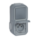 Prise et interrupteur bipolaire étanche avec terre Plexo Legrand montage apparent gris