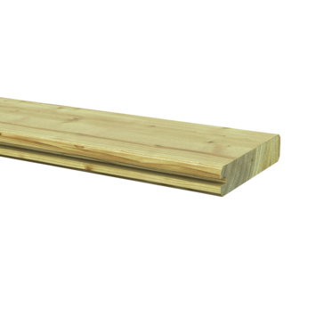 Cette planche a une épaisseur d'environ 28 mm et est en bois de pin imprégné. Une cloison peut facilement être réalisée avec la planche profilée en madrier de 28 mm d'épaisseur (article 159310). Utilisez cette planche profilée de couverture de la même couleur que la planche supérieure pour finir proprement le haut d'une section de clôture. Cette planche de profil de couverture a une rainure, mais pas de languette en haut. En conséquence, aucune dent ne dépasse en haut et elle est parfaitement lisse.