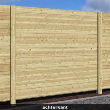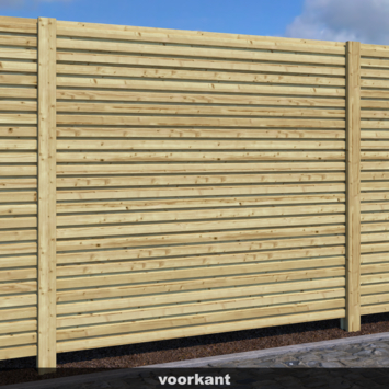 Cette planche a une épaisseur d'environ 28 mm et est en bois d'épicéa imprégné. En combinaison avec des poteaux rainurés, le profil Rhombus permet de créer facilement une cloison. Les planches peuvent facilement être glissées entre les poteaux grâce à la rainure et languette de la planche. Une cloison en planches Rhombus est un écran à lattes à l'avant et une clôture en planches fermées régulières à l'arrière.