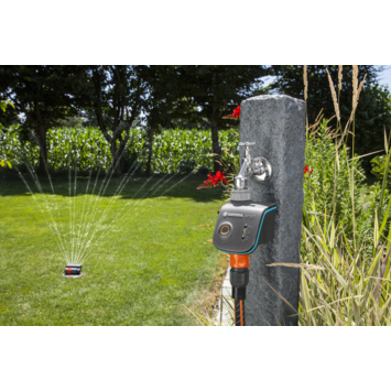L'ordinateur d'arrosage intelligent Gardena contrôle l'arrosage de votre jardin. Réglez l'ordinateur d'arrosage via l'application Gardena Smart. L'ordinateur d'arrosage intelligent est idéal pour l'arrosage automatique avec le système Gardena Micro-Drip ou Sprinkler. L'ordinateur d'arrosage Gardena Smart fonctionne via la passerelle Gardena Smart et trois piles alcalines AA 1,5 V (non incluses). L'ordinateur d'arrosage Gardena Smart est un complément idéal à l'ensemble du système intelligent Gardena.