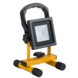 Projecteur LED rechargeable avec poignée et pied. Le projecteur a une puissance de 10W et donne une lumière blanche froide de 600 lumens. Le projecteur est équipé d'une batterie rechargeable et est donc ultra-mobile. Idéal pour éclairer les endroits difficiles d'accès ou confinés.