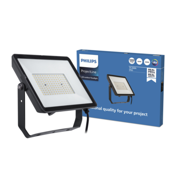 Lampe LED robuste et étanche pour l'extérieur. Le projecteur Philips ProjectLine (200 W) diffuse une lumière blanc chaud, est économe en énergie et résiste aux intempéries. Cette lampe est en mesure de résister aux chocs grâce à sa fabrication à partir de matériaux métalliques robustes. Idéal pour éclairer les zones situées à l'avant ou à l'arrière des bâtiments (publics), comme les parkings, les allées, les jardins ou les chantiers.