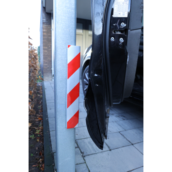 La protection est dotée d’une encoche spéciale permettant de la placer facilement autour d’un angle de mur, d’un pilier ou d’un poteau. Grâce à sa mousse de 1,5 cm d’épaisseur, elle absorbe sans effort l’impact des portières qui s’ouvrent trop largement.