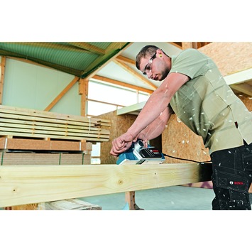 Le rabot GHO 26-82 D de Bosch Professional vous permet de travailler le bois comme un pro. Puissant, il est très précis, dispose d'un moteur de 710 watts et convient pour une épaisseur de copeau allant jusqu'à 2,6 mm. Sa plaque de base stable en aluminium vous garantit un résultat parfait. Changement de fer rapide grâce au système Woordrazor et à un réglage très simple.