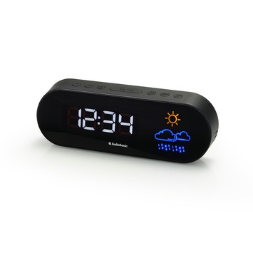 Un radio-réveil avec station météo ? Chez Gamma, ça existe ! Ce radio-réveil unique signé Audiosonic ne vous donne pas seulement l'heure, il vous indique également la météo au moyen de symboles. En outre, ce réveil branché est également doté un écran trois couleurs avec fonction dimmable, de la radio, et d'une "dual alarme" vous permettant de configurer deux réveils. Piles non incluses.