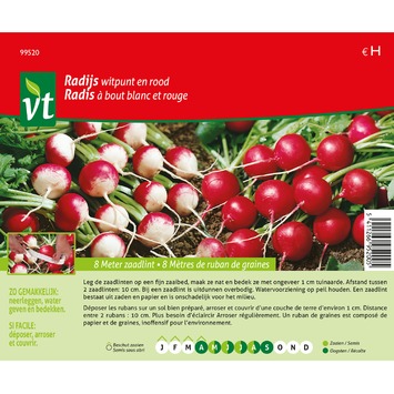 Fan de jardinage ? Chez GAMMA, vous n'allez pas manquer de trouver votre bonheur : des semences aux potagers sur pieds. Parmi ces semences, il y a celles de radis à bout blanc et rouge ruban de graines. À semer de préférence de mai à août.