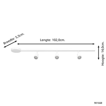 Le rail et les spots sont fabriqués en plastique blanc et aluminium avec un abat-jour blanc, ce qui confère à l'ensemble un aspect moderne qui s'adapte à différents styles d'intérieur. L'éclairage est commandé via un interrupteur mural et, comme les sources lumineuses ne sont pas incluses, vous pouvez choisir vous-même les ampoules GU10 (max. 10 W) qui correspondent à l'effet lumineux souhaité.