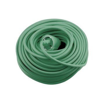 Exin a des rallonges de (presque) toutes les longueurs et de différents coloris. Ce cordon vert en plastique a trois fils conducteurs avec une épaisseur de fil de 1,5 millimètre, une longueur de 30 mètres et une tension nominale de 230 volts.