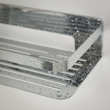Plus d'ordre et de propreté assurés dans votre salle de bain avec le panier de douche Tiger Caddy chromé grand modèle. Fonctionnel et élégant : sa base plate et ses bords hauts maintiennent les objets bien en place, tandis que les fentes d'évacuation permettent à l'eau de s'écouler facilement. Grâce aux angles arrondis, vous pourrez nettoyer le panier sans vous blesser les doigts. Ce produit est le Houdini des accessoires de salle de bain, mais la propreté de votre salle de bain ne sera pas une illusion. Donnez vie à vos idées de design de salle de bain avec ce grand panier moderne chromé Tiger Caddy.