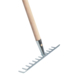 Ce râteau de jardin GAMMA à 12 dents a une largeur de travail de 30 cm. Le râteau est un outil polyvalent pour ratisser, niveler et travailler le sol. Le râteau est en acier trempé et possède un manche en bois de 160 cm.