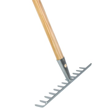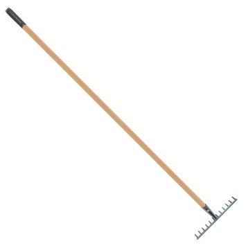 Ce râteau convient pour l’élimination de déchets de jardinage ou de feuilles et l’égalisation des sols. Le râteau Gamma a 12 dents réparties sur une longueur de 3 cm. Fabriqué en acier galvanisé, ce qui prévient la rouille et augmente sa longévité. Manche en bois de 16 cm. Bien nettoyer et huiler les parties en métal après usage.