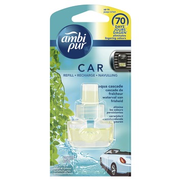 Le désodorisant pour voiture Ambi Pur 'Aqua' NV est un pack de recharge qui redonne à votre voiture une odeur fraîche. La recharge parfumée aqua s'insère dans le support d'origine de votre désodorisant Ambi pur. Vous pouvez fixer fermement le pack de recharge à la grille de ventilation avec le clip. Le désodorisant pour voiture Ambi Pur 'Aqua' NV est l'un des nombreux parfums différents de la gamme Ambi Pur. Avec un pack de recharge, vous pouvez conduire sans soucis dans une voiture neuve jusqu'à 70 jours. Grâce au parfum liquide du désodorisant pour voiture Ambi Pur 'Aqua' NV, votre voiture sent frais et agréable.
