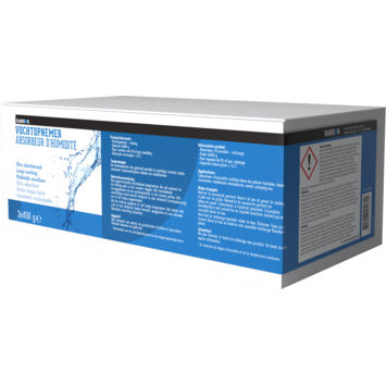 La recharge Handson absorbeur d’humidité 3 x 450 g convient pour recharger l’absorbeur d’humidité Handson (603821) L’absorbeur d’humidité Handson élimine l’humidité de votre maison. Il permet une absorption supérieure de l'humidité et une neutralisation des mauvaises odeurs (de moisi) dans les espaces (trop) humides. Action prolongée et idéal pour les pièces humides, voiture, garage ou caravane.