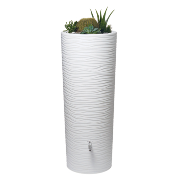 Grâce à ce tonneau de pluie Garantia blanc de 350 L avec jardinière, vous disposez d’une réserve d’eau pratique et élégante au jardin. Cet élégant tonneau de pluie surmonté d’une jardinière et pourvu d’un joli robinet chromé mesure 62 cm de diamètre, 150 cm de haut et a une contenance de 350 litres. Son matériau est quasi indestructible. Le gel, la pluie et les intempéries de toutes sortes n’ont aucune incidence sur ce tonneau de pluie. Il faut juste le vider en cas de gel.