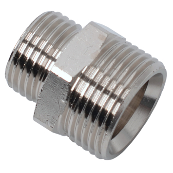 Raccordez vos conduites à vos appareils à l'aide de ce mamelon double de réduction chromé de 3/4" (20 mm) de diamètre d'un des côtés M et 1/2" (15 à 16 mm) de l'autre côté M.