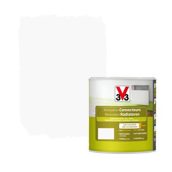 Rénovez vos convecteurs et radiateurs avec cette peinture V33 Rénovation Radiateurs. Cette peinture 2 en 1 adhère parfaitement aux supports lisses et fermés, pas besoin de primaire. La peinture satinée blanche en pot de 500 ml ne coule pas, résiste aux chocs, aux passages intensifs et aux nettoyages fréquents avec les produits ménagers les plus courants.