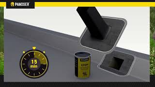 Vous nettoyez la surface de toute poussière, déroulez l'EPDM et collez la surface avec Pandser Spraybond ou Pandser PU-Bond. Pour les éléments en relief et les bordures de façade, utilisez Pandser Bonding Adhesive et travaillez le tout soigneusement avec un rouleau de pression. Grâce au format de 3 x 4,2 mètres, vous terminez rapidement le toit sans beaucoup de découpe ni de chevauchement. Ainsi, vous travaillez rapidement et sans tracas.