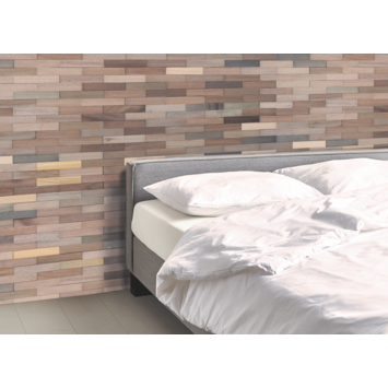 Le revêtement mural en chêne Borneo Calabria vous permet de changer totalement l’aspect de votre mur. Les éléments uniques en bois confèrent à votre paroi un look tout à fait authentique. Tirés des parties les plus dures du chêne, les éléments restent beaux très longtemps. Le bois utilisé est certifié FSC. Les panneaux sont faciles à scier sur mesure et se collent au mur avec un polymère ou kit de montage. La teinte n’est pas tout à fait à votre gout : ce revêtement mural est disponible en plusieurs teintes. En emballage de ± 1,267 m².