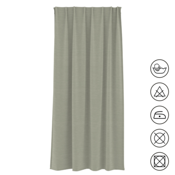 Vous pouvez laver ce rideau à la main à l'eau tiède et, si nécessaire, le repasser à température tiède, mais le rideau ne convient ni à l'essorage ni au sèche-linge.
