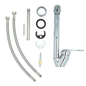 Le robinet de cuisine OK chromé à bec haut est un mitigeur fourni avec 2 flexibles de raccordement, matériel de fixation, clé de montage et instructions de montage. Ce mitigeur de cuisine, très pratique, permet de régler d’une seule main la température d’eau souhaitée. Grâce à son haut bec courbé de 25,5 cm, vous avez toute la place voulue pour rincer la vaisselle ou remplir un seau. Et avec le bec pivotant à 360°, c’est encore plus pratique. Il suffit de le tourner pour disposer de toute la place voulue dans l’évier. Ce robinet intemporel a une belle finition en chromé brillant qui s’harmonise à toutes les cuisines. Nettoyez uniquement au chiffon doux et à l’eau claire. N’utilisez pas de produits d’entretien abrasifs, mordants, agressifs ou contenant du vinaigre. Ce robinet bénéficie de 2 ans de garantie.