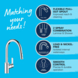 Deze kraan voldoet aan alle beschrijvingen. De zwenk optie is heel fijn met 1.5 wasbak.