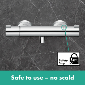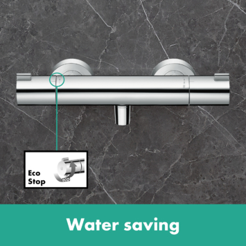 Le mitigeur de douche thermostatique Hansgrohe MyFox chromé 15 cm se caractérise par son design élégant et est donc un bel accroche-regard dans chaque salle de bain. Ce mitigeur respectueux de l'environnement est équipé de la fonction EcoSmart ecostop, ce qui signifie que le robinet ne laisse pas passer plus de 10 litres d'eau par minute et que vous utilisez jusqu'à 60% d'eau en moins. Le débit peut être augmenté en appuyant sur le bouton eco-stop. La pression et la température de l'eau peuvent être facilement ajustées grâce aux deux poignées en métal. La fonction de sécurité permet de régler à l'avance la température maximale de l'eau afin d'éviter les brûlures causées par une eau trop chaude. Il est réglé sur 40°C par défaut. Le robinet contient un filtre à impuretés rinçable afin qu'il reste protégé de manière optimale contre les résidus possibles dans la tuyauterie.