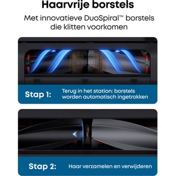 Le moteur puissant fournit une aspiration de 20 000 Pa et élimine facilement la poussière, les miettes et les poils. Les brosses DuoSpiral empêchent les poils de s'emmêler, réduisant ainsi presque totalement le besoin d'entretien. Ainsi, le robot continue de travailler sans interruption, même dans les foyers avec plusieurs animaux.